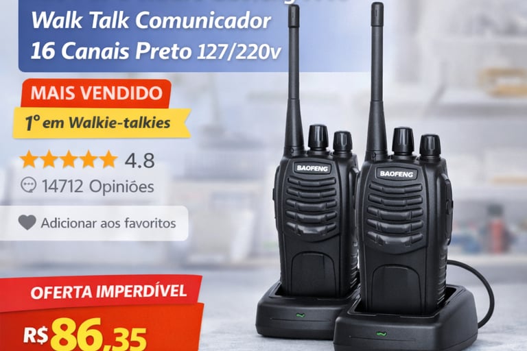 Esses pontos explicam por que o produto é líder em vendas na categoria de walkie-talkies.